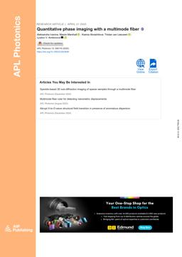 Ivanina, A., Marshall, M., Abrashitova, K., van Leeuwen, T., & Amitonova, L. (2025). Quantitative phase imaging with a multimode fiber. APL Photonics, 10(4), 046116 : 1–11. doi:10.1063/5.0253648 |
