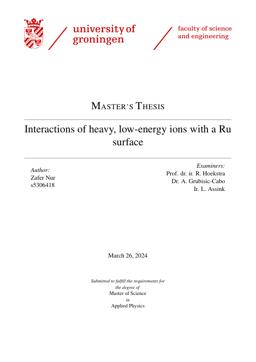 Nur, Z. (2024, March 26). Interactions of heavy, low-energy ions with a Ru surface. |